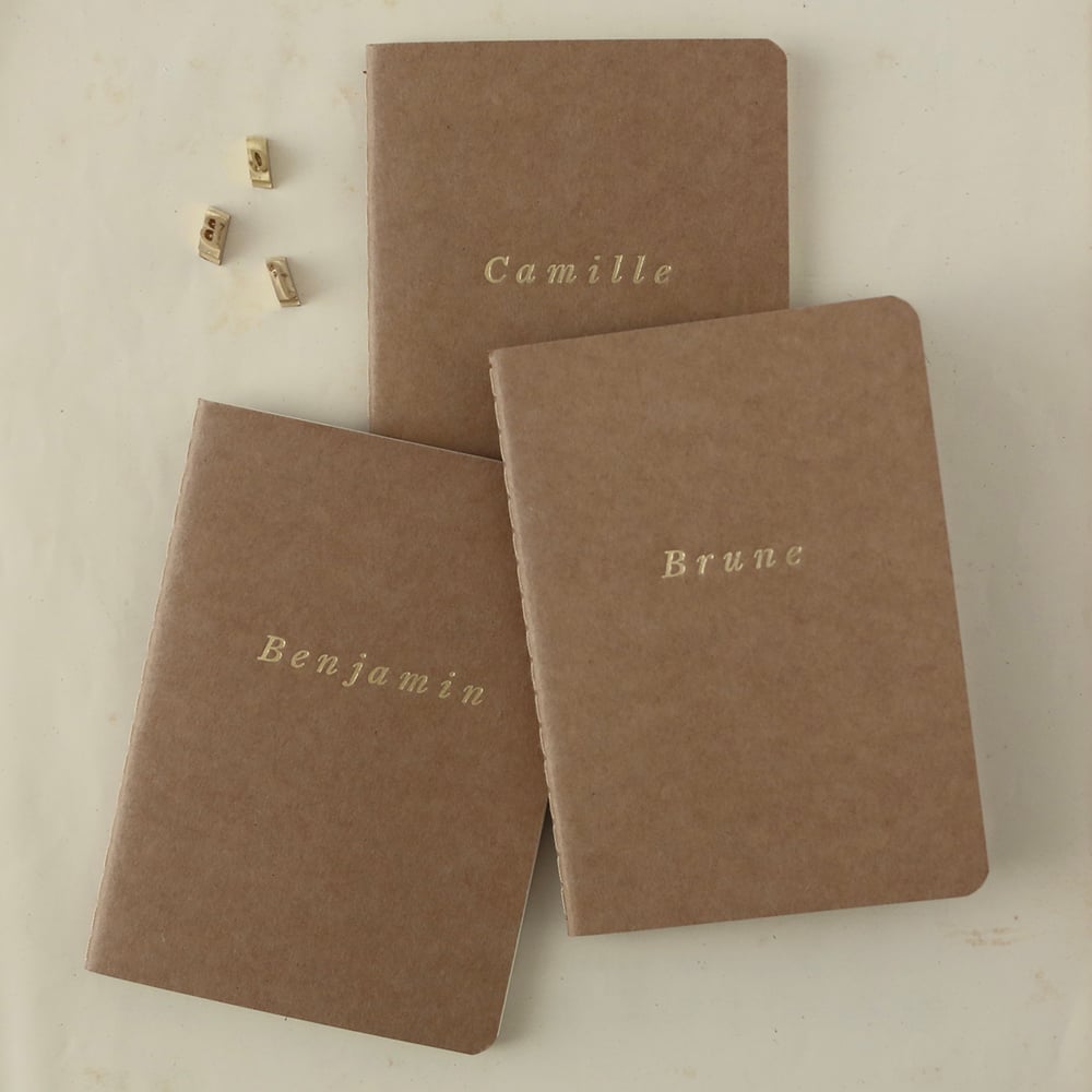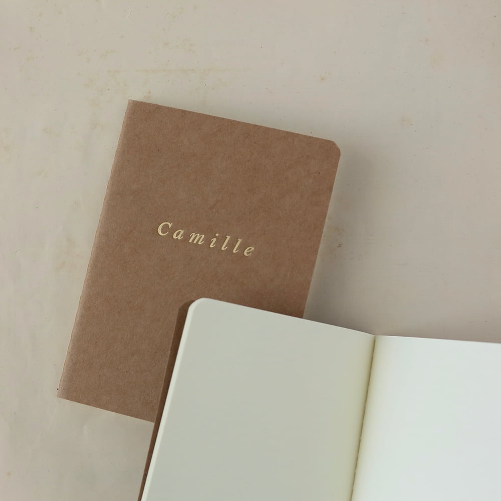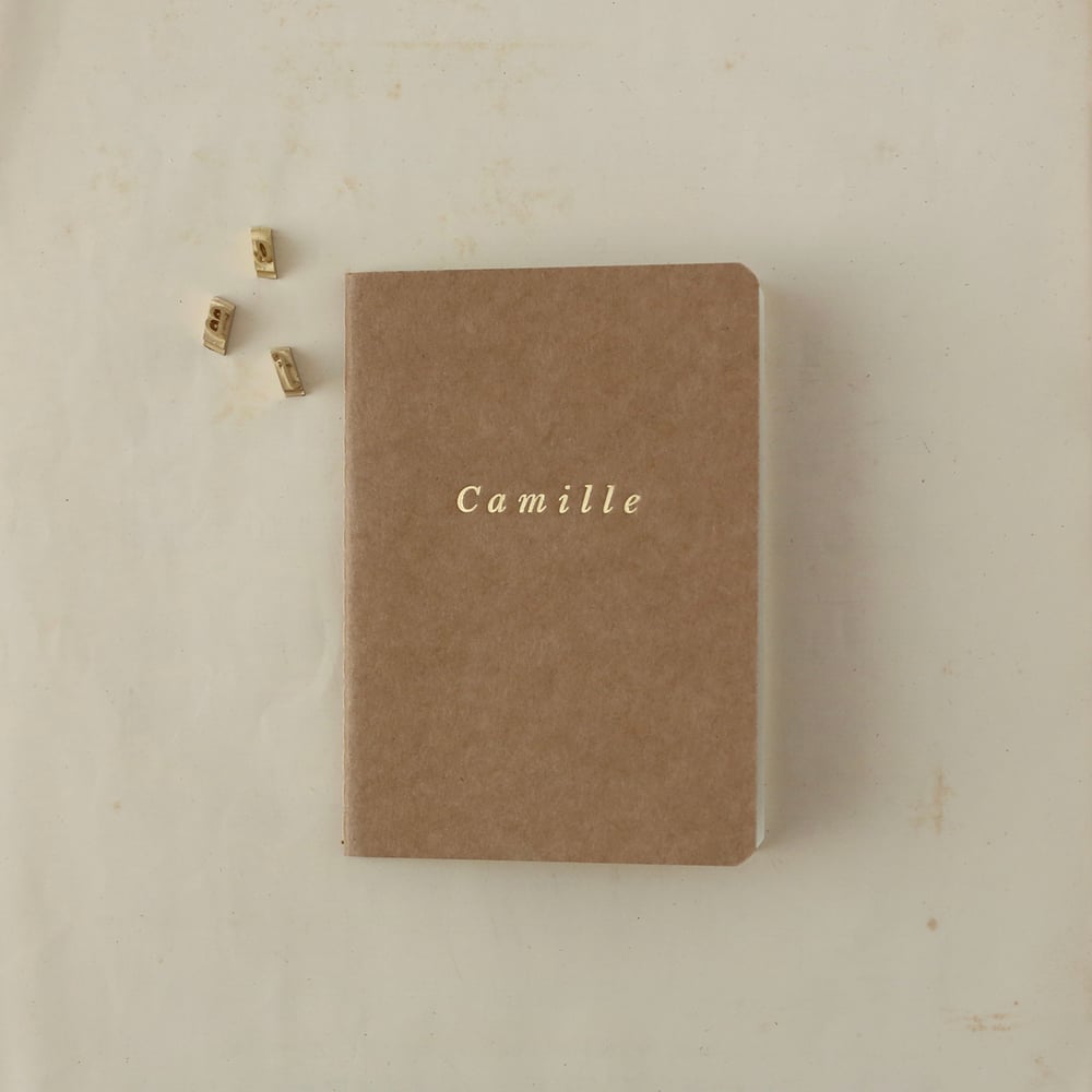 ° Le prénom est doré à chaud selon une technique artisanale réalisée par Caroline dans son atelier à l'aide d'une presse.